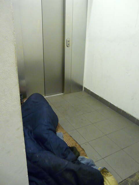 La veille de la dernière foire à la brocante, il a demandé au service technique de passer un coup de peinture blanche dans les escaliers et les paliers de l’ascenseur.