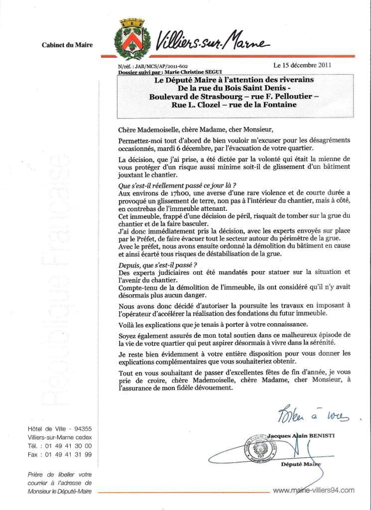 Dans la nuit du 6 au 7 décembre 2011, les deux immeubles touchés en mars 2011 sont cette fois détruits sur ordre du Maire de Villiers-sur-Marne