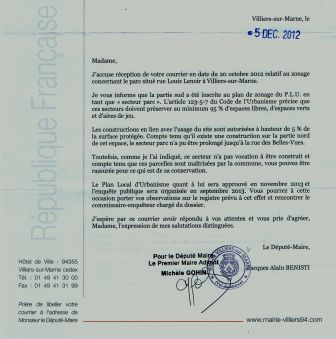 Vous trouverez ci-dessous, la lettre envoyée par le Président du Codevi au Commissaire enquêteur dans le cadre de l’enquête publique relative à l’élaboration du Plan local d’urbanisme (PLU)