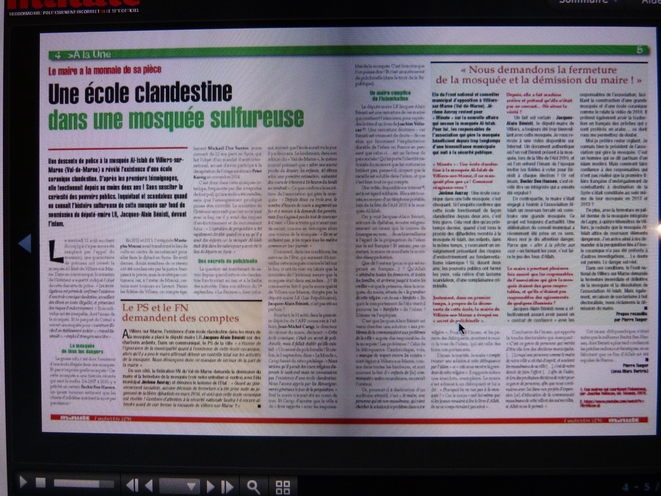 qui publie par ailleurs une enquête sur le sujet de la mosquée de Villiers en pages 4 et 5