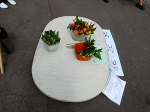 … que tous les vendeurs installés à la gare, devant Super U, rue du Général de Gaulle etc. ont été priés sous la menace d’une amende de plier leurs tables (ou même d’enlever les pieds de leur table comme sur la photo), d’ôter les feuilles de cellophane qui entouraient leurs brins …