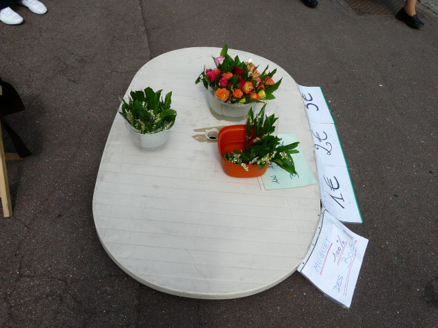 … que les vendeurs de muguet du Parti socialiste présents au centre ville ont été priés d’enlever les roses (un comble !) présentes sur leur petite table, table qu’ils ont été contraints également de démonter…