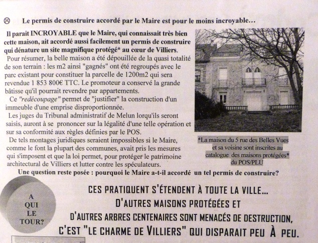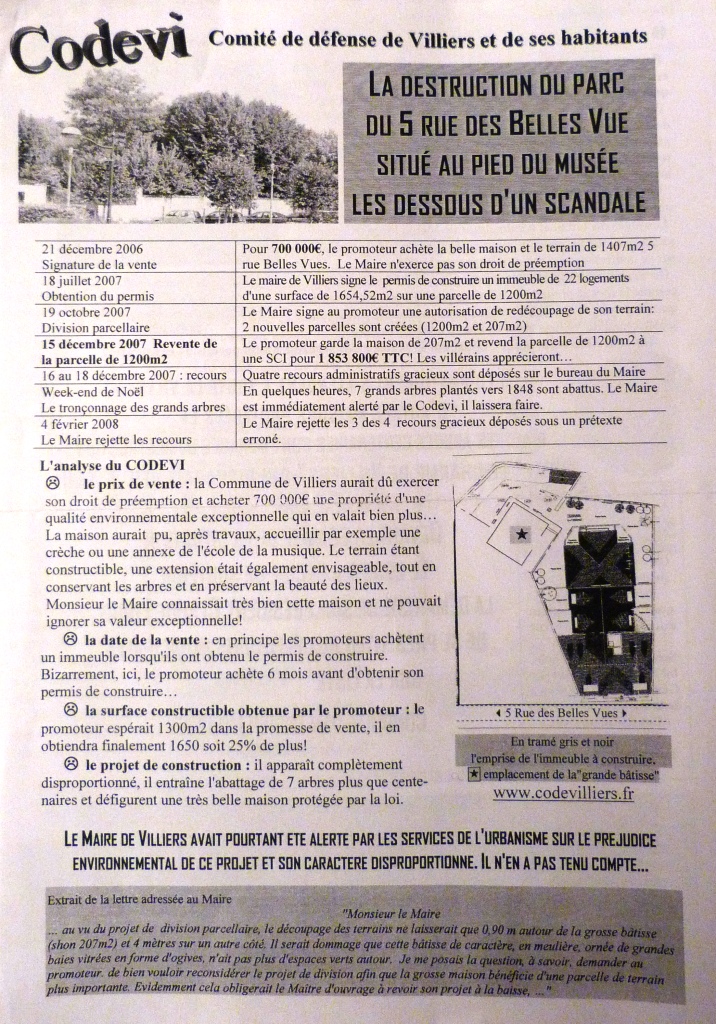 Petit Journal N° 2 publié en février 2008 pour dénoncer le scandale de la destruction du parc de la rue des Belles Vues.